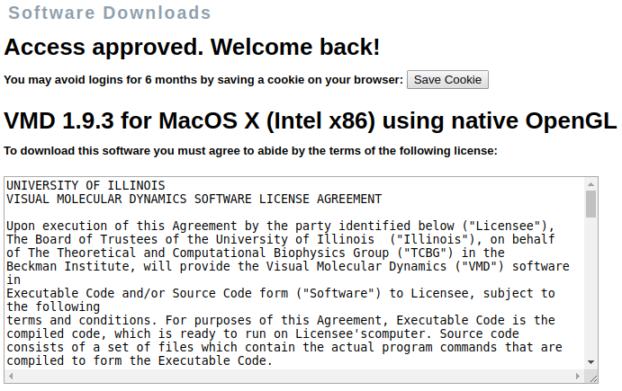 - Note that although VMD software is free for academic use, it is mandatory to be registered for downloading it. You must agree to the terms of the license: